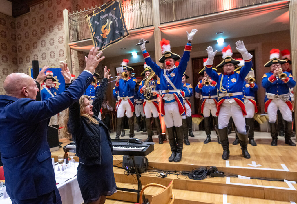 Auch die Alte Beckumer Stadtwache war zu Gast und sorgte für eine jovel Stimmung im Rathaussaal. Der Mitmach-Auftritt erweckte die Gäste aus dem Grünkohl-Koma und verhalf der Veranstaltung zu einer weiteren fröhlichen zweiten Hälfte.
